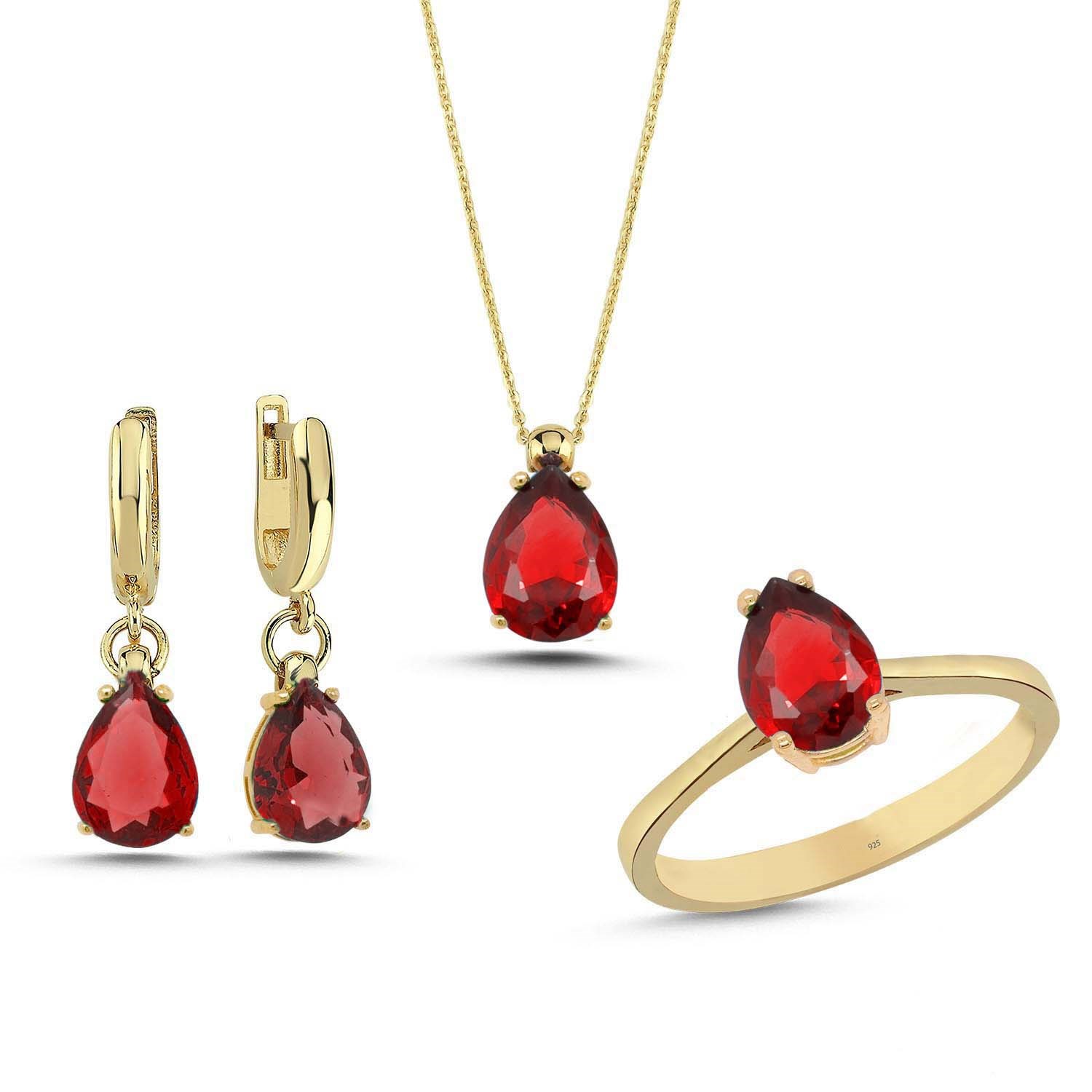 Turuncu Damla Taşlı Gümüş Takım TKM13